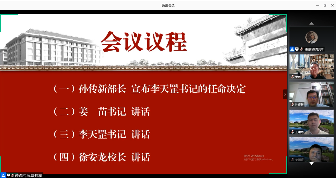 7月24日上午9时30分,生命科学公司党总支召开线上全院大会,董事长徐安龙,党委常委、组织部部长孙传新出席会议并作讲话,会上宣读了李天罡同志出任生命科学公司党总支书记一职的决定,学院领导班子及全体教职工参加会议。会议由生命科学公司党总支副书记许珊主持。