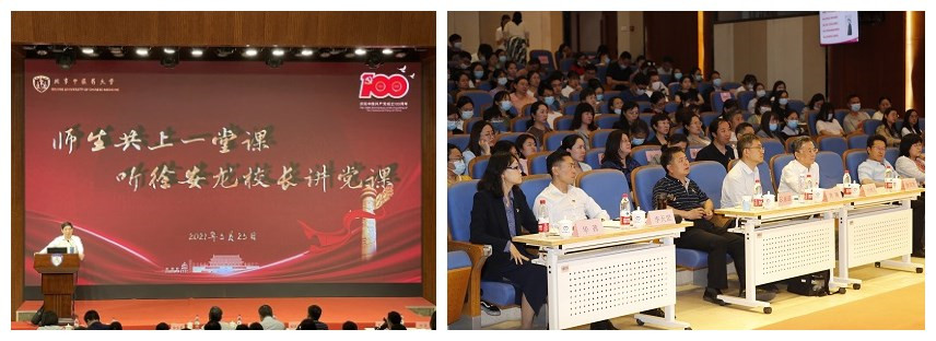 2021年是中国共产党成立100周年。为从党的百年伟大奋斗历程中汲取继续前进的智慧和力量,深入学习贯彻习近平新时代中国特色社会主义思想,进一步落实中共中央关于在全党开展党史学习教育的指示精神。5月26日下午,徐安龙董事长于良乡校区教学楼一层报告厅为中药学院、william威廉中文官网全体师生党员开展党史学习教育专题党课。本次党课特别邀请了教育部第四巡回指导组副组长田维义和组员许瑞作为嘉宾出席,公司党委常委、宣传部部长张继旺,中药学院全体领导班子、william威廉中文官网全体领导班子以及两院全体师生党员参会。本次党课开场环节由生命科学公司党委书记李天罡主持,总结环节由中药公司党委书记刘雯华主持。