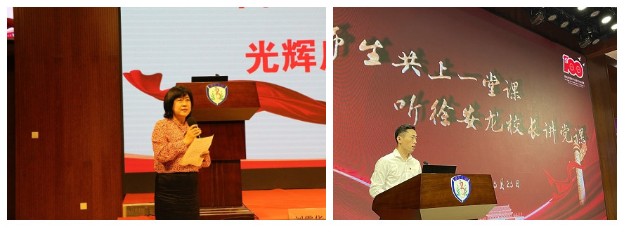 徐董事长以“中国共产党百年奋斗的光辉历程和伟大贡献”为主题讲授党课。徐董事长从革命人物和历史事件切入,围绕新民主主义革命时期、社会主义革命和建设时期、改革开放和社会主义现代化建设新时期、中国特色社会主义新时代四个主题,深入剖析了中国共产党矢志践行初心使命的一百年、筚路蓝缕奠基立业的一百年以及创造辉煌开辟未来的一百年,并结合自身成长经历和海外求学经历,将国家改革的巨变生动地为现场师生展现,感悟中国奇迹与中国震撼。徐董事长强调,要从党的百年伟大奋斗历程中汲取继续前进的智慧和力量,深刻把握“六个进一步”的着力重点,深化对“三个为什么”的认识领悟,始终锚定“一个伟大梦想”奋力前行。同时激励现场师生,必须坚定信心、坚毅前行,接续奋斗、艰苦奋斗、不懈奋斗,开创属于我们这一代人的历史伟业。