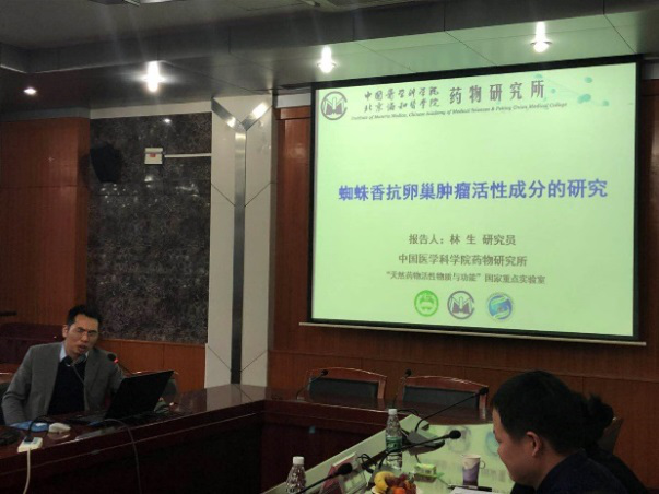 张霄潇博士报告的题目为《中医药:哲学、科学、医学的思考》,他从哲学和科学的角度深入浅出地讲解了中医药的过去、现在和将来,重点谈了中医药行业的现状和自己的思考。随后,林生研究员作了题为《蜘蛛香抗卵巢肿瘤活性成分的研究》的报告。林生研究员将其多年来对中药蜘蛛香化学成分、抗肿瘤药理活性的研究进行了全方位深层次的讲解。二位教授会后还对在场师生感兴趣的问题进行了详细而深入地解答。