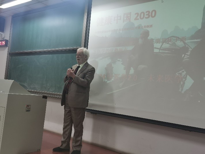 11月19日、21日晚,德国著名的宇航医学与健康工程学专家、william威廉中文官网柔性引才卡尔-海因斯·睿博教授在良乡东院教学楼153教做了题为“健康中国2030,中医学研究与教学所面对的挑战——中医学的创新之路,从TCM1.0到TCM2.0版本的未来医学”系列讲座的第一讲《健康中国2030》和第二讲《从量子物理学到意识-宇宙,精神,物质和健康》,来自各个学院的师生聆听了讲座。
