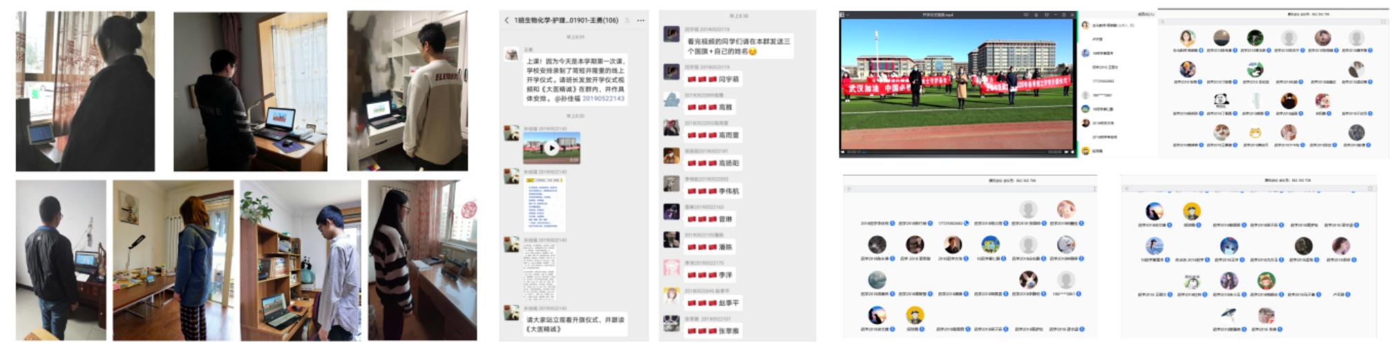 没有了传统的黑板粉笔、三尺讲台,老师们充分利用电脑和线上资源,依旧将课程开展得有声有色。上课前,各班级师生一起参加了简短而不失隆重的线上开学升旗仪式,并跟读《大医精诚》节选,满满的仪式感为新学期拉开了序幕。