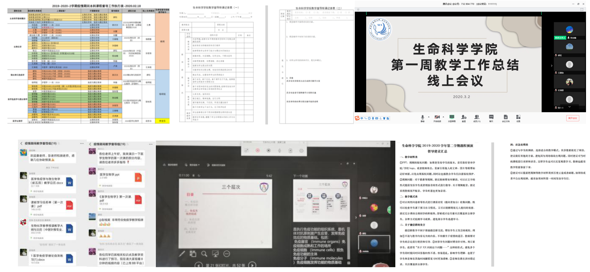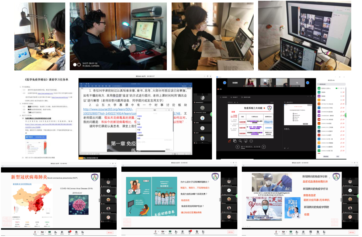 《医学免疫学与微生物学》《微生物与免疫学》课程组提前针对同学们的具体情况进行问卷调查,包括上网条件、电脑资源等,采用最合适的方式进行线上教学。开课一周前给同学们下发课前学习单,明确课前预习内容、学习目标和自学内容、方式以及自学的测试题。利用腾讯会议、Zoom、雨课堂等软件进行线上教学,基于授课课程的有利条件,结合当下时事热点,进行导入式、启发式教学,科教融合,培养员工建立科研辩证思维,加深同学们对于知识点的理解与运用。