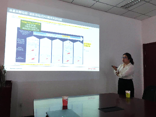 来自Thermo fisher的何茹博士则为大家介绍了Thermo公司推出的数字PCR技术,该技术解决了传统PCR技术只能测已知序列、不能精确定量的难题,且灵敏度极高,可应用在基因表达分析、转基因检测、拷贝数变异、NGS结果验证等等方面。基于整合医学中心建立的Ion Torrent测序平台,何博士介绍了Ion GeneStudio S5 Plus的新一代基因测序技术,该平台操作方便,且自带分析软件,可进行突变检测、热图分型、细菌/病毒分型等等分析,并针对一些实际案例进行了详细的讲解。同学们对该平台兴趣浓厚,发言踊跃,会后纷纷表示收获颇多。