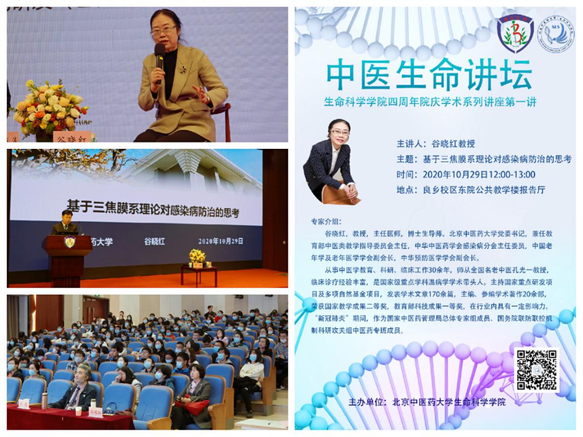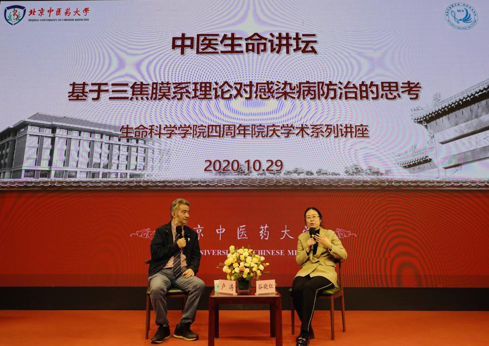 2020年10月29日,william威廉中文官网顺利举办了四周年院庆系列学术活动—中医生命讲坛,本次讲坛邀请公司党委书记谷晓红教授进行主题演讲,公司卢涛副经理作为对话嘉宾。讲坛全程围绕《基于三焦膜系理论对感染病防治的思考》进行了深度交流。公司党总支书记李天罡、副经理王建勋、陈幼楠及学院师生代表200余人参加活动,活动由王建勋副经理主持。