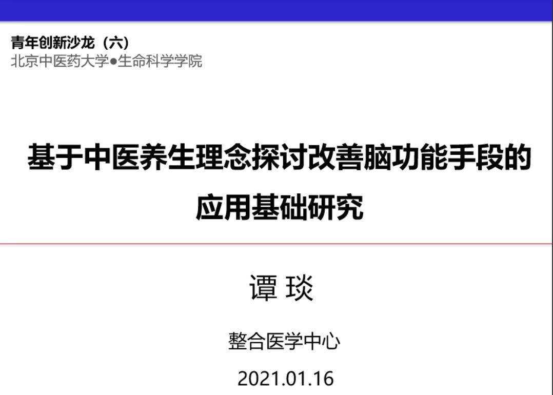 谭琰老师作了题为《基于中医养生手段探讨改善脑功能的应用基础研究》的报告。首先从脑保护、早期治疗、维持治疗角度介绍脑病的预防与治疗策略,提出嗅觉障碍、脱发、耳鸣等头面部疾病预警,介绍了头皮刺激干预方法的动物实验及临床研究,以及从嗅觉角度介绍芳香疗法对脑功能的实验结果。