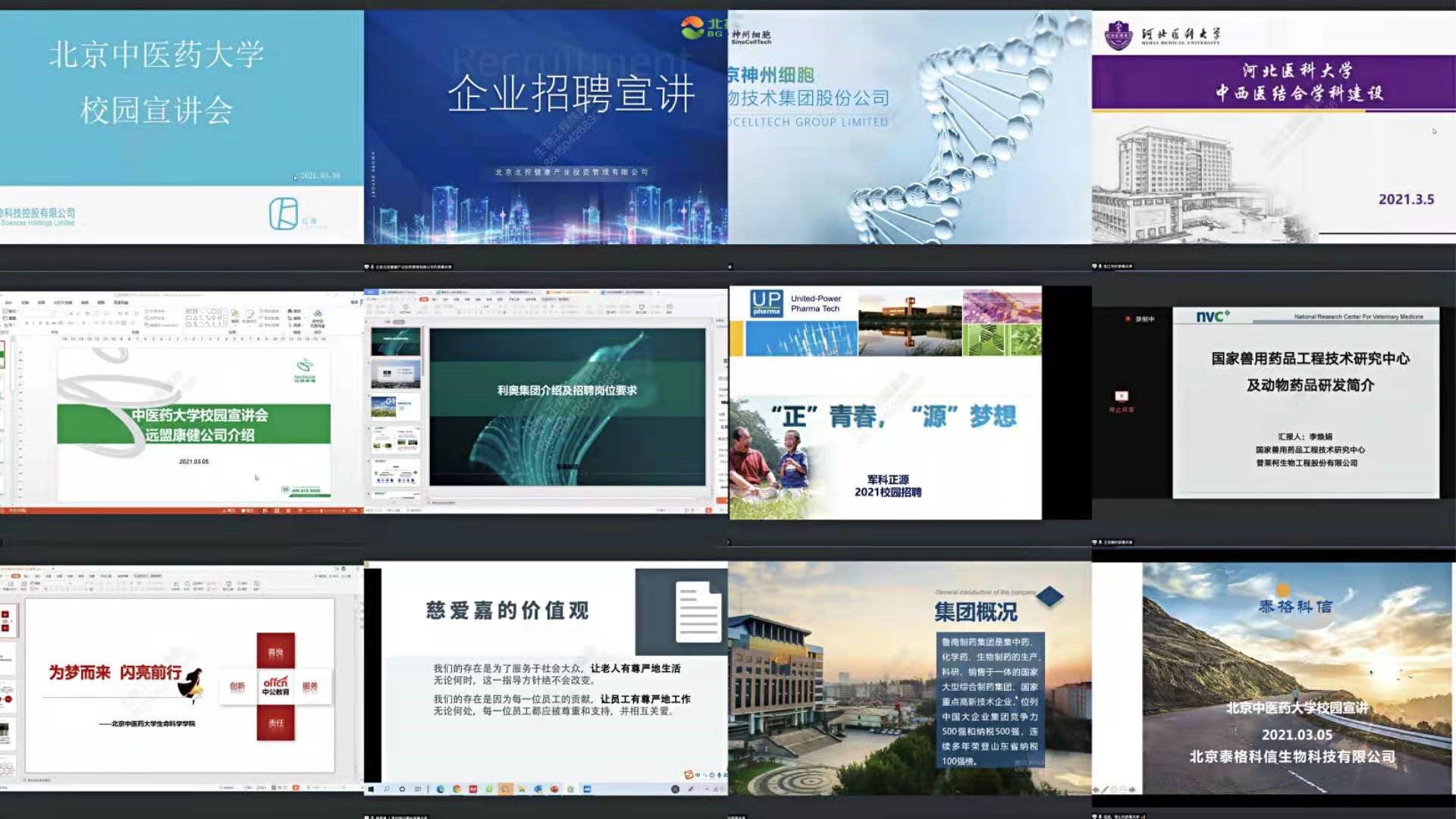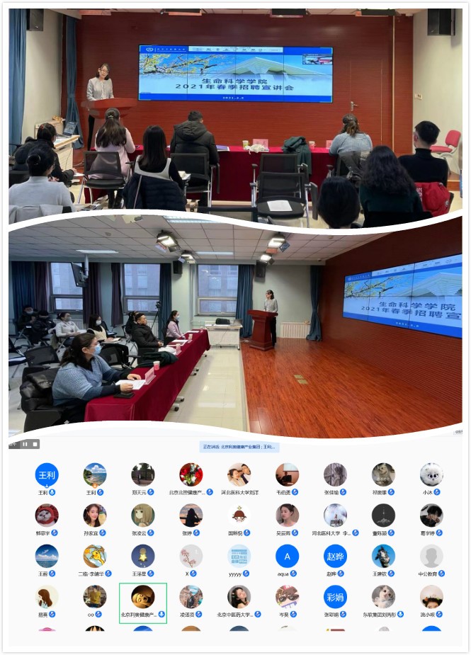 活动面向全校员工开展,采用线上、线下相结合的模式,以充分满足在校与未返校员工的需要。此次线上招聘暨宣讲会参与企业21家,涉及高等院校、医疗机构、生物医药、信息技术、大健康产业、教育培训、医药相关建筑安装等多个行业。