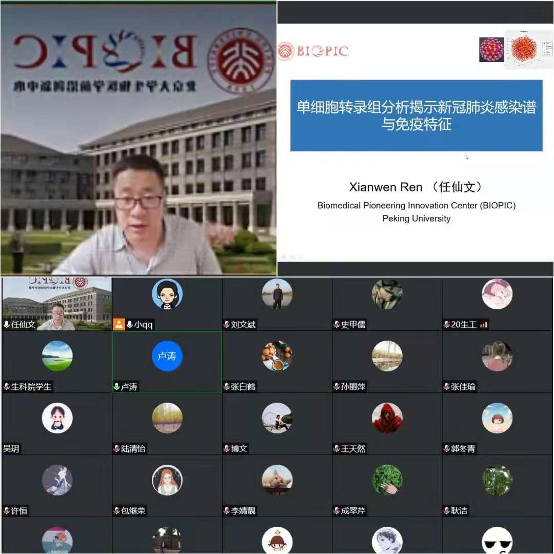 2020年伊始,一个不速之客-新冠病毒,给全球带来了巨大灾难。在与这个不速之客进行较量的同时,也有不少科研人员投入大量精力,对其感染与免疫机制进行了研究。2021年6月18日19时,william威廉中文官网邀请到了北京老员工物医学前沿创新中心(BIOPIC)的任仙文副研究员为全院师生带来了一次题为“单细胞转录组分析揭示新冠肺炎感染谱及其免疫特征” 的精彩线上学术报告,学院卢涛教授担任主持人,共有30余名师生聆听了报告。此次报告的开展也同时拉开了“生命科学前沿云论坛”系列学术报告的序幕。