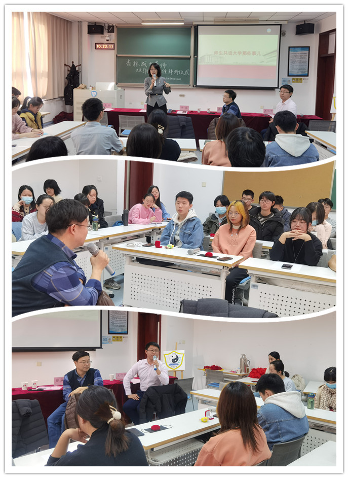 一段承载着2021级生物工程本科班师生们成长记忆的暖场DV,带领大家见证了一学期来同学们的成长,有生科学子的奋发向上,更有班级成长的温馨瞬间。仪式正式开始,党委副书记许珊介绍了生科院本科班创新实行“多维导师引领模式”的初衷及开展情况,这是学院在本科生培养模式方面的一项创新举措,生涯班主任、学术班主任、杏林成长导师,三位一体引领,并配合学术导师全程指导,探索本科生思政教育与专业教育融合发展的路径,将思政教育贯穿学习生活全过程,全方位助力本科生的综合能力提升。自从2020级学院第一届本科生试行该模式以来,取得了非常好的效果。随后,许珊副书记宣读了2021级生物工程本科班多维导师名单:杏林成长导师华茜、学术班主任张成岗、生涯班主任毛伯䶮。
