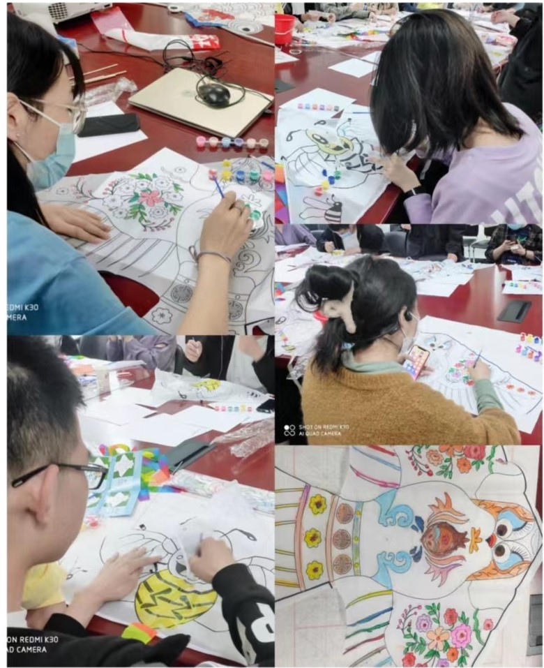活动伊始,李楠老师介绍了活动内容,鼓励大家要在活动中享受生活,释放压力。本次风筝节活动主要分为三个部分。第一部分是绘制风筝,地点位于生科院416会议室,同学们在空白的风筝上,随意涂色绘画成有自己独特个性的风筝,其中不乏有趣生动的图画,比如:可爱的小黄人,冬奥明星冰墩墩,简笔画,大家还在风筝上写下了对未来生活的期许。风筝上涂画的不仅仅是彩色生动的图案,更表达了员工们对春天美好的期许以及对未来美好的向往;第二部分是放飞风筝,同学们在416会议室绘制风筝完后,到操场进行了试飞活动,小组同学们互相交流互相合作,对风筝进行调整后试飞,调整,再试飞,一只只风筝逐渐出现在操场的上空,蔚蓝的天空顿时成了一个激情四溢的舞场,各式各样的风筝在空中翩翩起舞,操场上洋溢着同学们的欢声笑语;第三部分是风筝绘制大比拼,大家把绘制的风筝拍成照片,由学院的同学们共同投票选出最佳的创作。整个活动充满了欢声笑语,同学们将对生活和学业的期许化为了笔下的一幅幅画卷,将对未来的梦想放飞到蓝天之上。