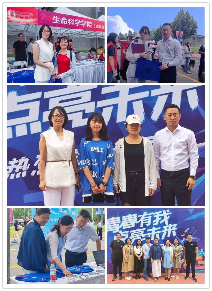 公司党委书记王瑶琪亲临迎新现场,亲手为生科新生佩戴校徽和院徽,并与孩子们一起亲切交谈、合影,满满的仪式感,让生科学子备受激励和鼓舞。学院为孩子们准备了别具特色的“见面礼”,美丽生科蓝,“双螺旋”主题记事本,精巧别致的生科人专属书签,学院用心用情欢迎新同学;报到现场,孩子们和一直线上交流的师兄师姐见面,异常亲切,师兄师姐们帮助学弟学妹搬运行李、引导办理各类手续,带领大家参观校园,充分展现了生科人青春、热情、互助、进步的精神风貌;“寄给未来自己的信”作为生科院传统迎新活动,非常受新生欢迎,我们用相机定格每一位新生最美报道瞬间,由志愿者现场打印、封入信封并火漆封印,新生亲手将写给毕业时自己的一份期待和祝福投入邮筒,寄给未来的自己;“青春有我,点亮未来”班徽班服设计大赛成果在迎新现场进行了展示,孩子们穿上自己参与设计的班服时那种自豪和喜悦溢于言表,对生科大家庭的归属感也不断升温。